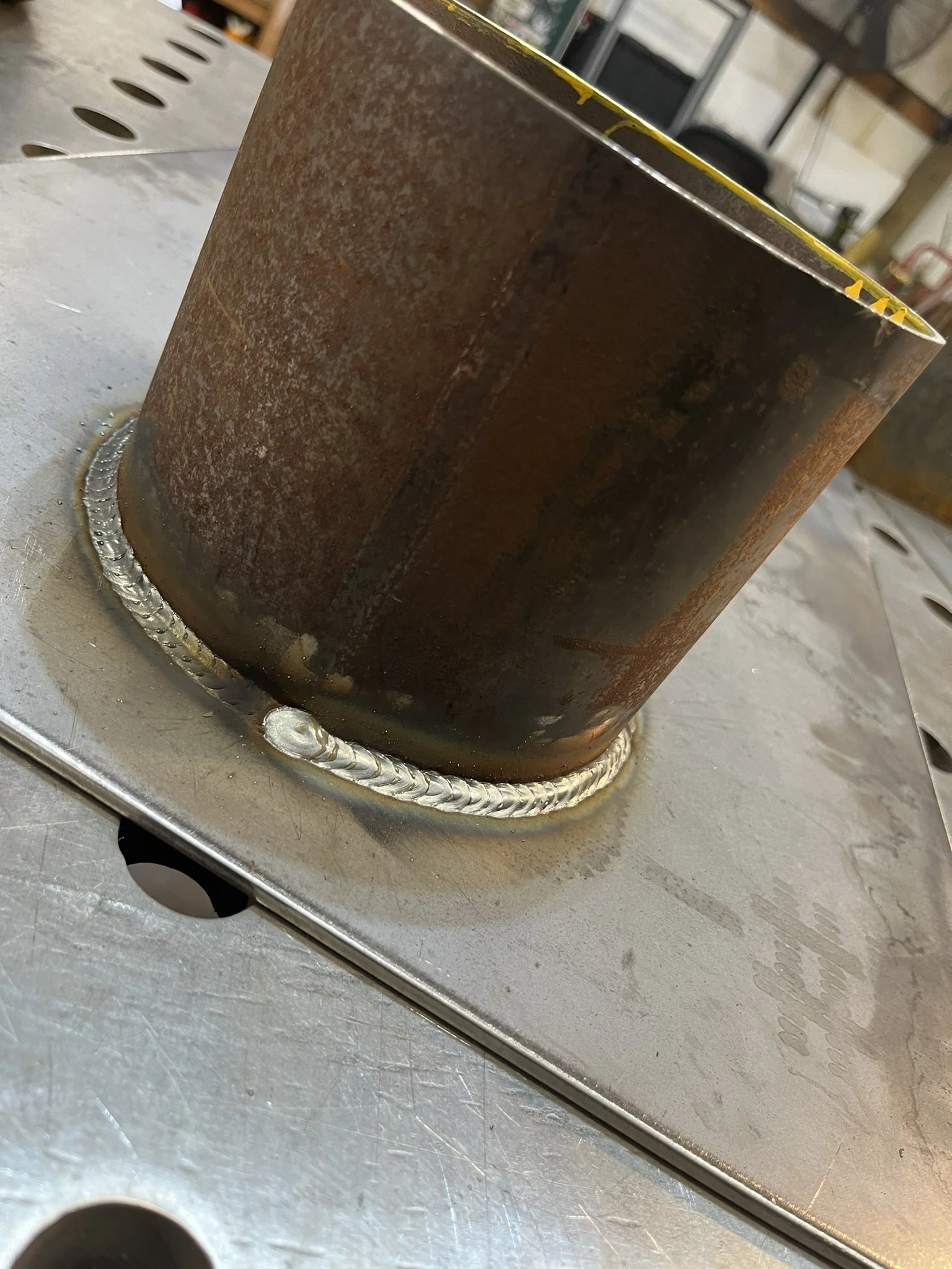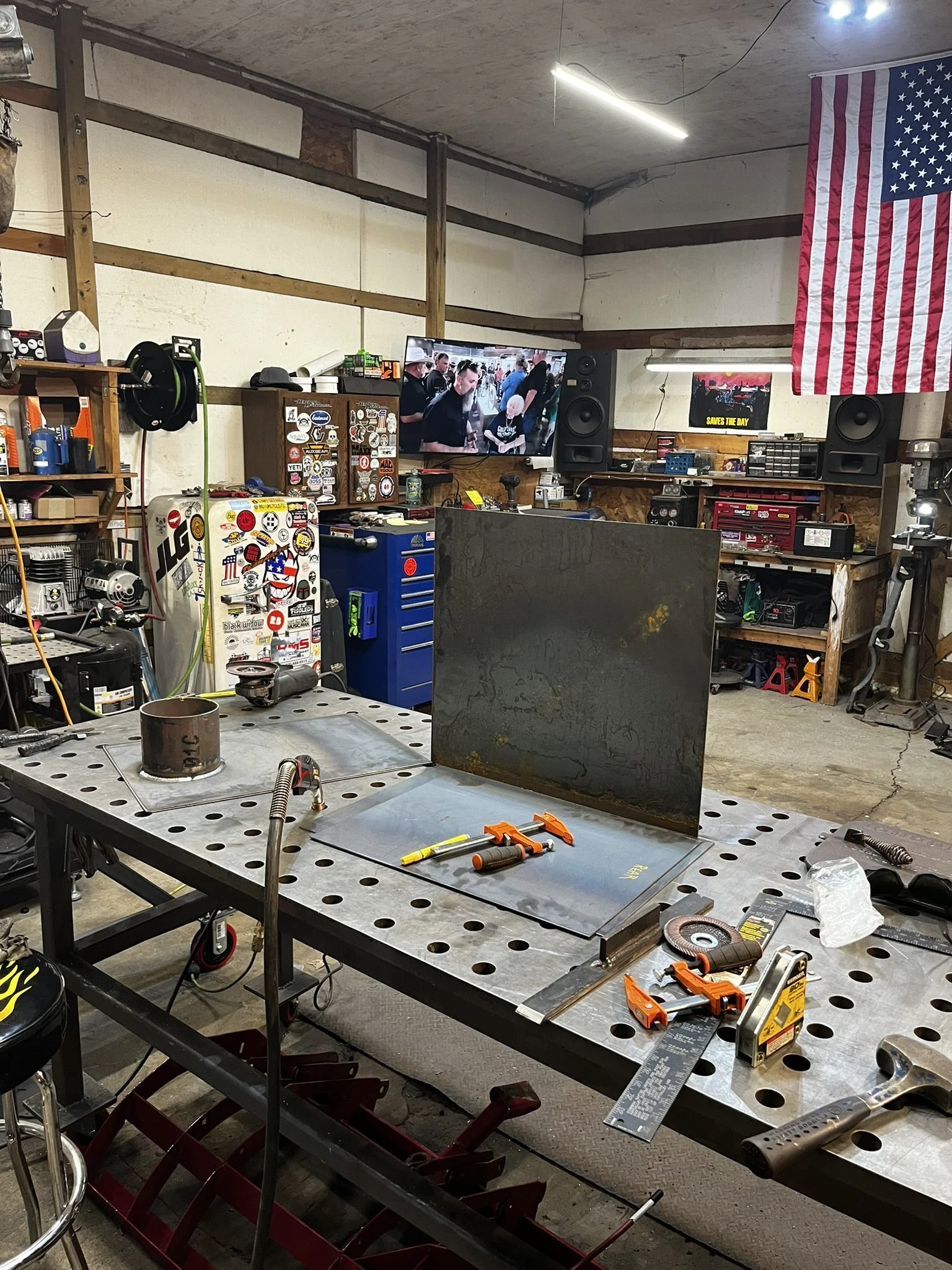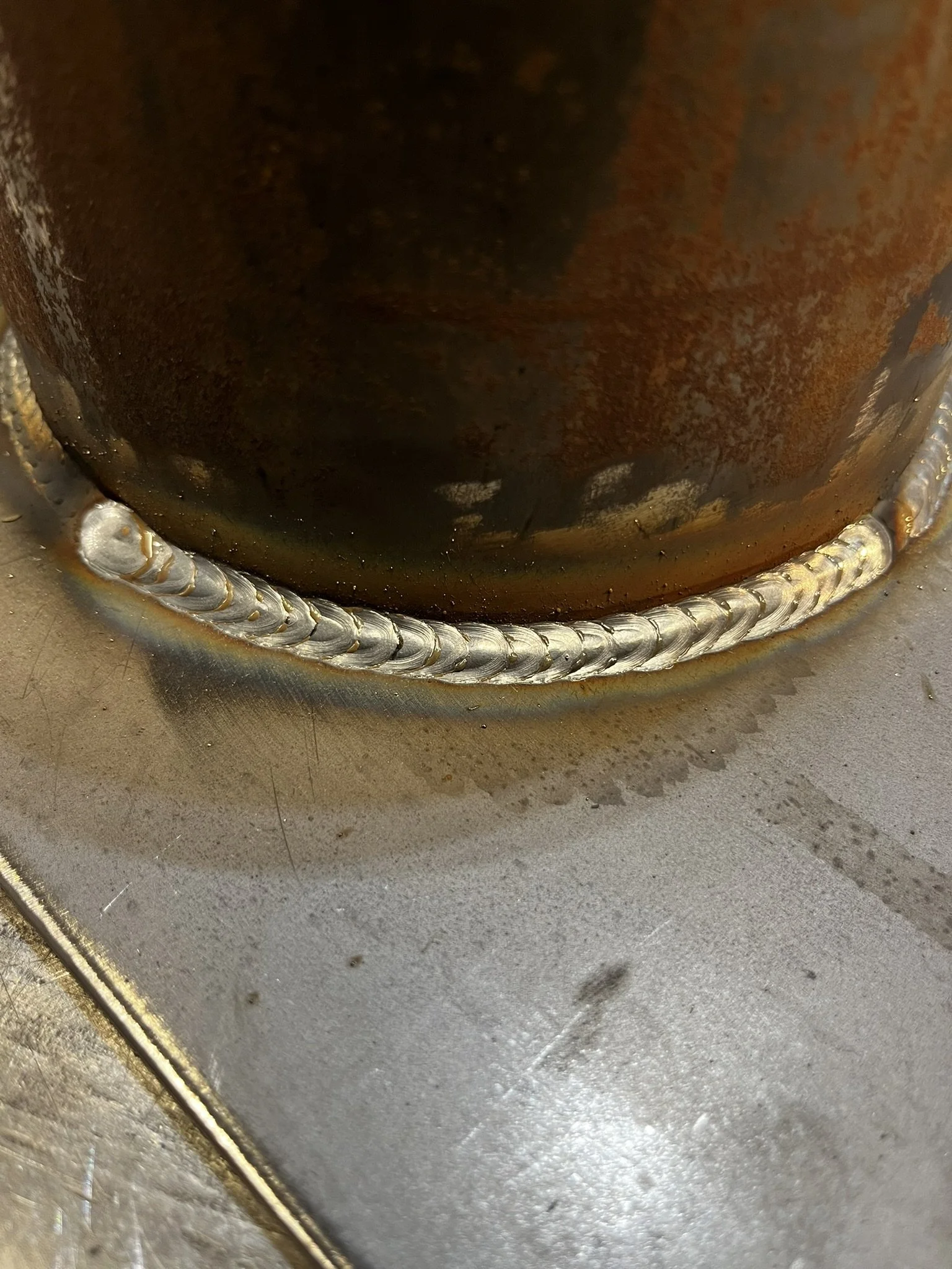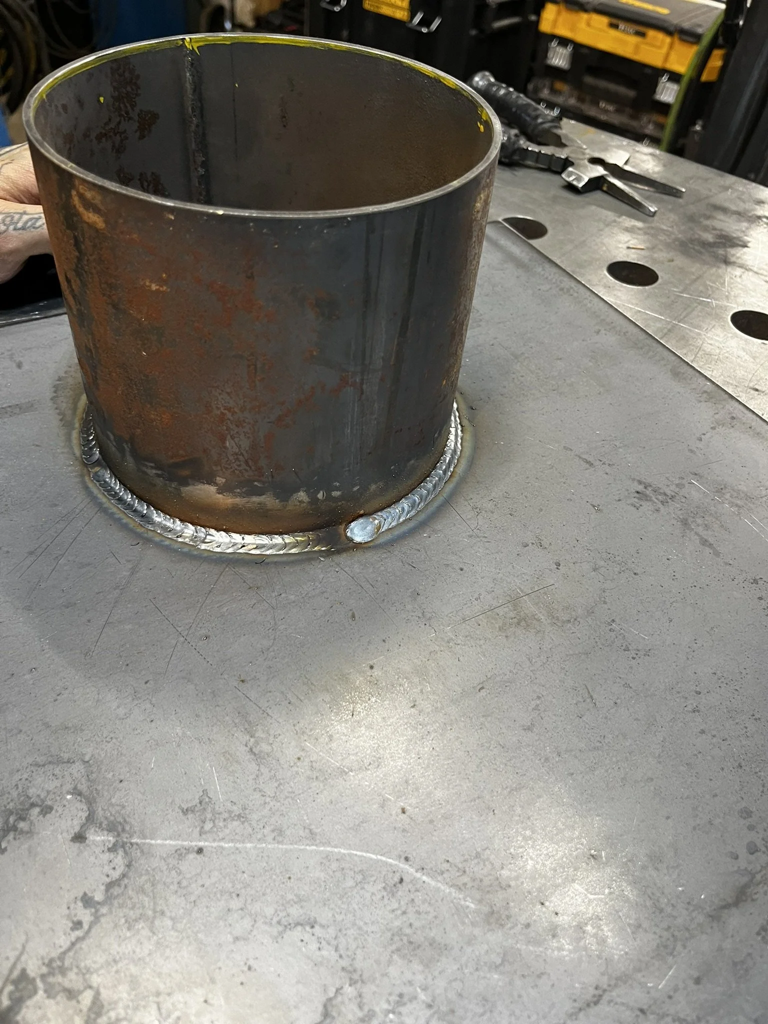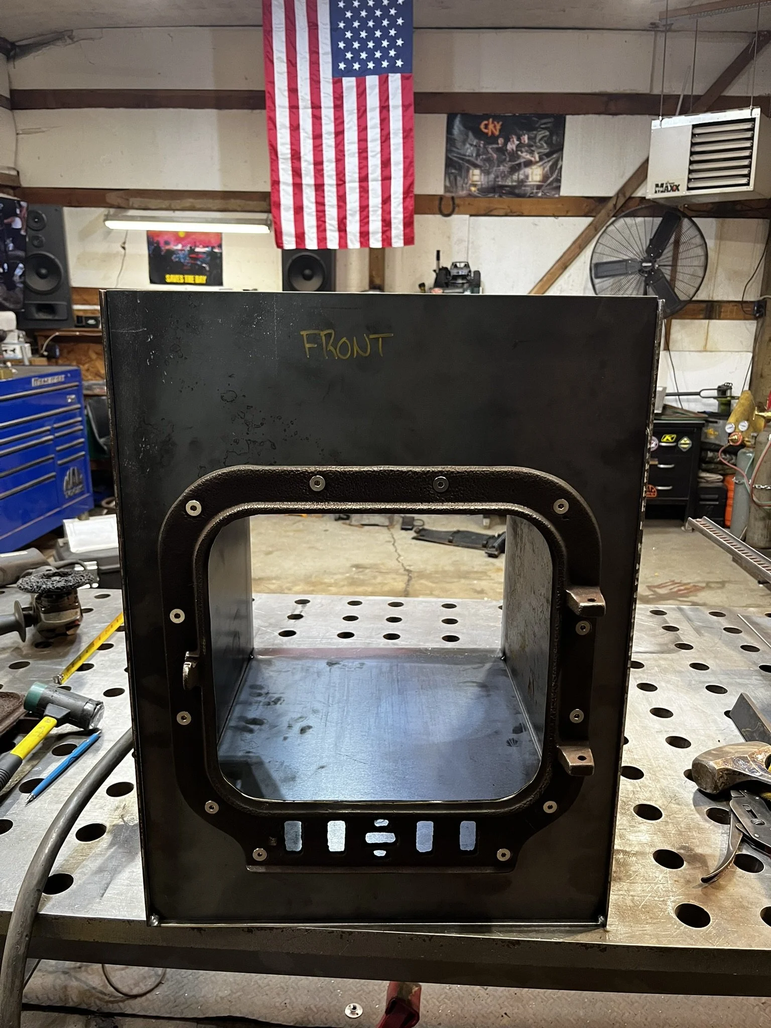 This sauna stove was built by copying the original design. The original stove had long since served its time and was in need of being replaced. The new box was cut and fabricated for 3/16" Mild Steel. This project was welded out using .035 ER 70S-6 wire and the GMAW process. The original cast steel door and draft window were resurfaced and coated with boiled linseed oil to help prevent further rusting . To finish the project off the door was secured with stainless steel hardware and stainless steel cotter pins.